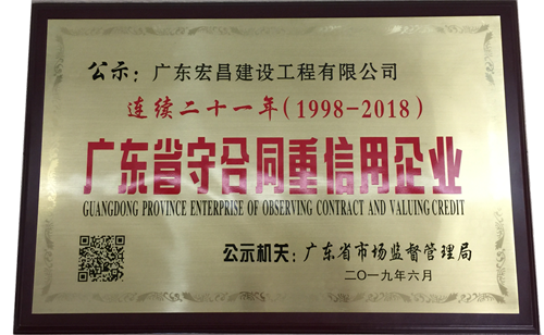 熱烈慶祝 廣東宏昌建設(shè)工程有限公司 榮獲廣東省市場監(jiān)督管理局頒發(fā)的連續(xù)二十一年“廣東省守合同重信用企業(yè)”。 ...